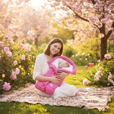 En été, privilégiez un nid d'ange léger en coton ou en tissus respirants qui protégera votre bébé du soleil et des courants d'air sans le faire transpirer.